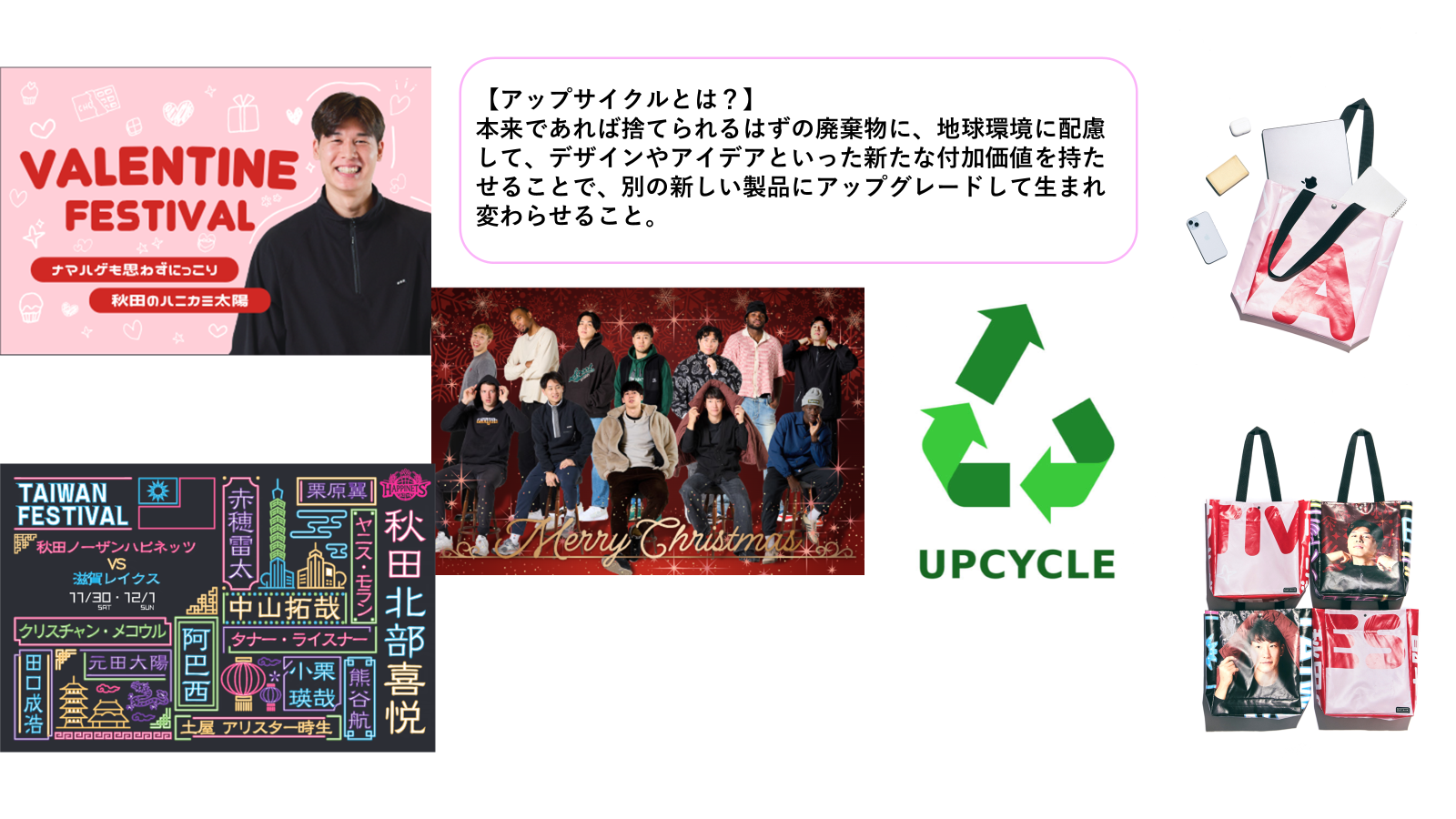 本プロジェクトでは、秋田ノーザンハピネッツの試合で実際に使用された掲出バナーを、デザイン性と機能性を兼ね備えた唯一無二のプロダクトとして生まれ変わらせます。