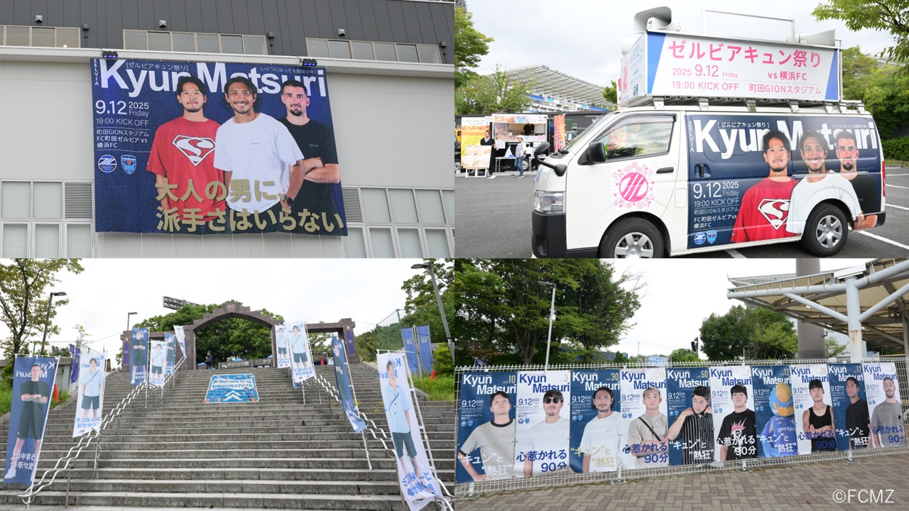 スタジアムを華やかに彩った“キュン祭り仕様”のバナーが選手、監督、ゼルビーの直筆サイン入りで登場!
