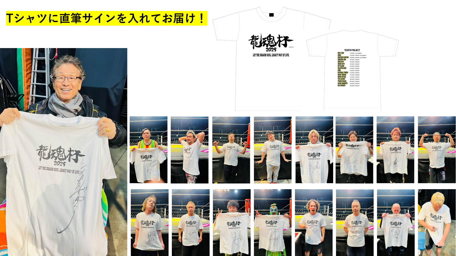 また、実際に選手が着用した龍魂杯2025Tシャツも着用選手の直筆サイン入り!そして限定非売品タオルも加えたスペシャルな3点セットでお届けします!