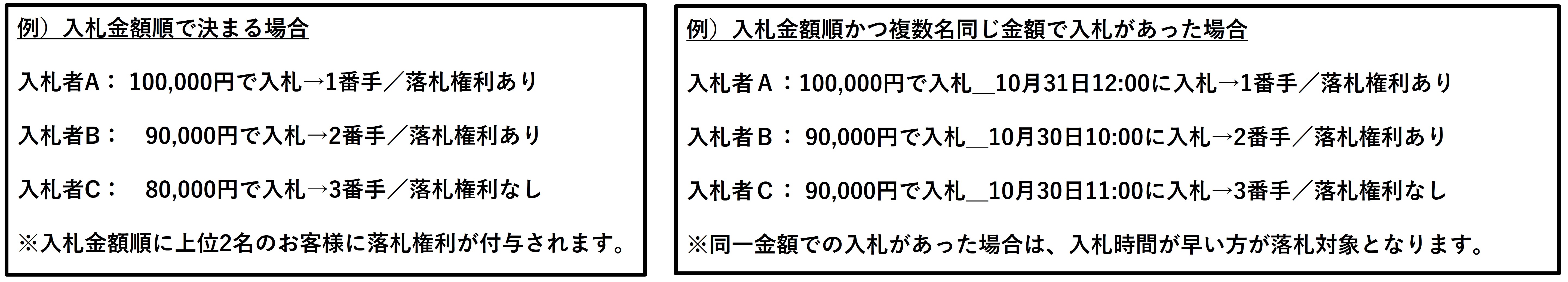 ※入札価格が同額となった場合、先に入札されたユーザーが優先されます。