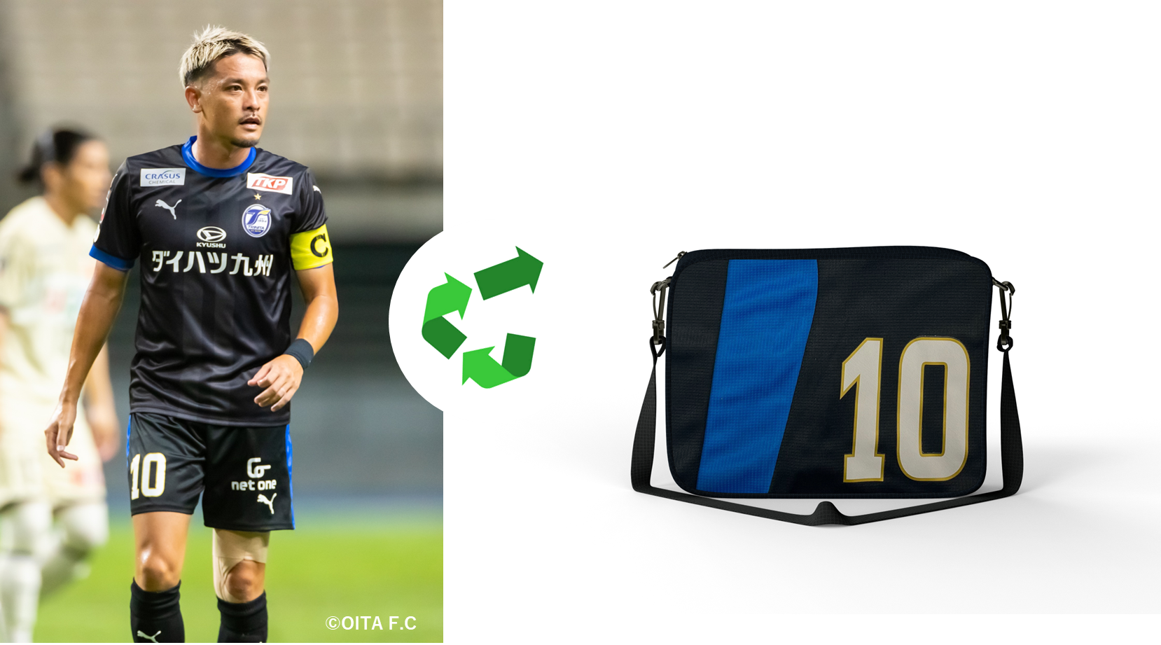 2025シーズン、大分トリニータのホーム3試合限定で選手たちが実際に着用したリミテッドユニフォーム。その特別なユニフォームを、アップサイクリングし、ショルダーバッグへと生まれ変わらせました。選手たちがピッチで流した汗と、ファンの皆さまの熱い声援が染み込んだ、“想い”の詰まったショルダーバッグです。あなたのトリニータへの想いを、より身近に。