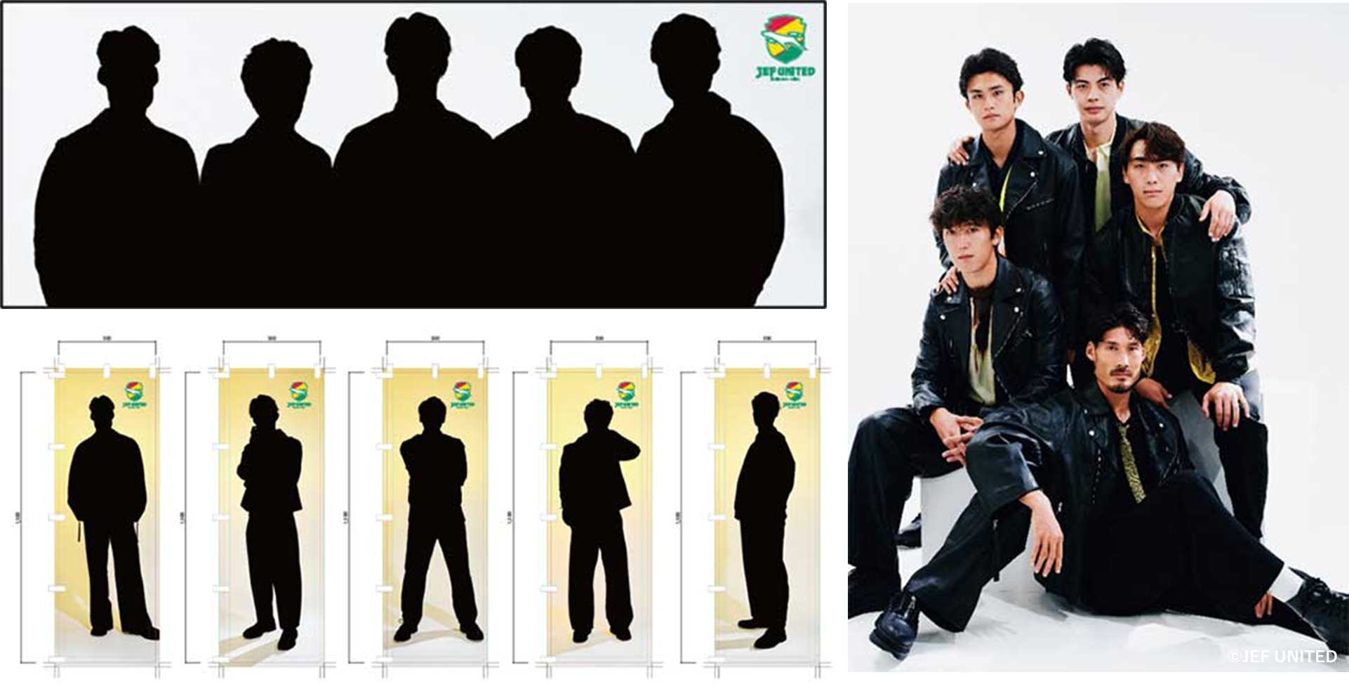 ジェフユナイテッド市原・千葉では、メンバーの中から5名を選出し、いつもとは異なる雰囲気の中で撮影会を行いました。普段のユニフォーム姿とは一味違う、選手たちの魅力が詰まったビジュアルを『のぼり旗』と『バナー』として仕上げました!