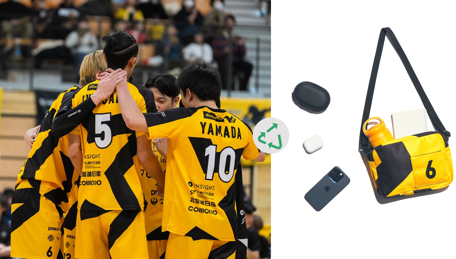 北海道イエロースターズは今シーズンの開幕を記念して、UPCYCLE AUCTIONを開催!出品するアイテムは、選手が昨シーズン着用したユニフォームパンツをアップサイクルした、世界に1つだけのショルダーバッグです。