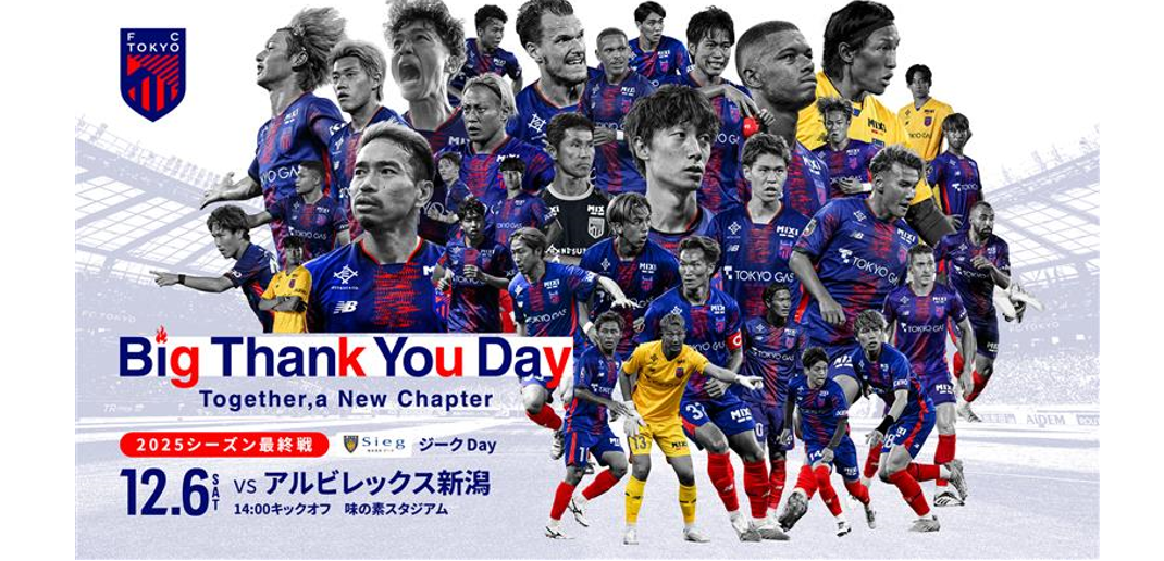 2025シーズン、FC東京は新たなスタイルを模索し戦い抜いたシーズン。その集大成となる最終節は、ホーム・味の素スタジアムでアルビレックス新潟を迎えます。12月6日は、選手・スタッフ・サポーターが一体となるBig Thank You Day。