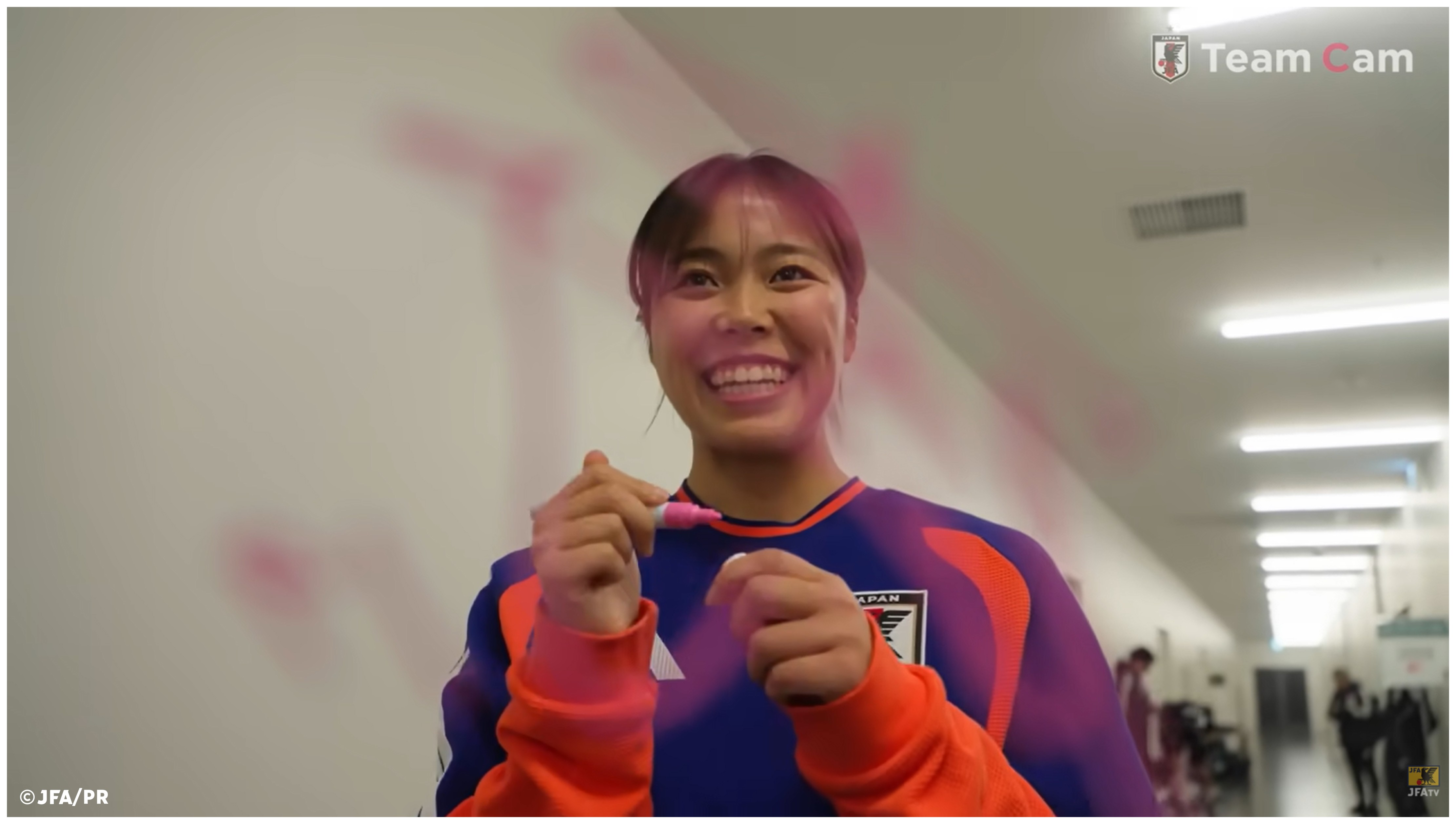 試合後に、本試合で得点を挙げた3選手からTeam Camのカメラ越しにサインを行ったプレートです。