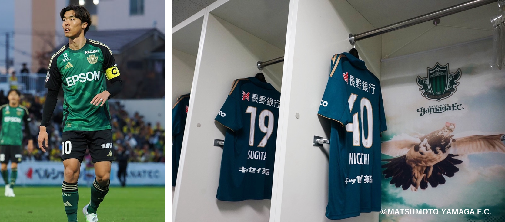今回は松本山雅FCは、シーズンを通して選手たちが実際に試合時に使用した様々なアイテムを出品します。今回は「雷鳥」が大きく入った直筆サイン入りロッカータペストリーが登場!選手ロッカー内で使用されていたアイテムで、選手達のその時々の心境やストーリーが刻まれています。