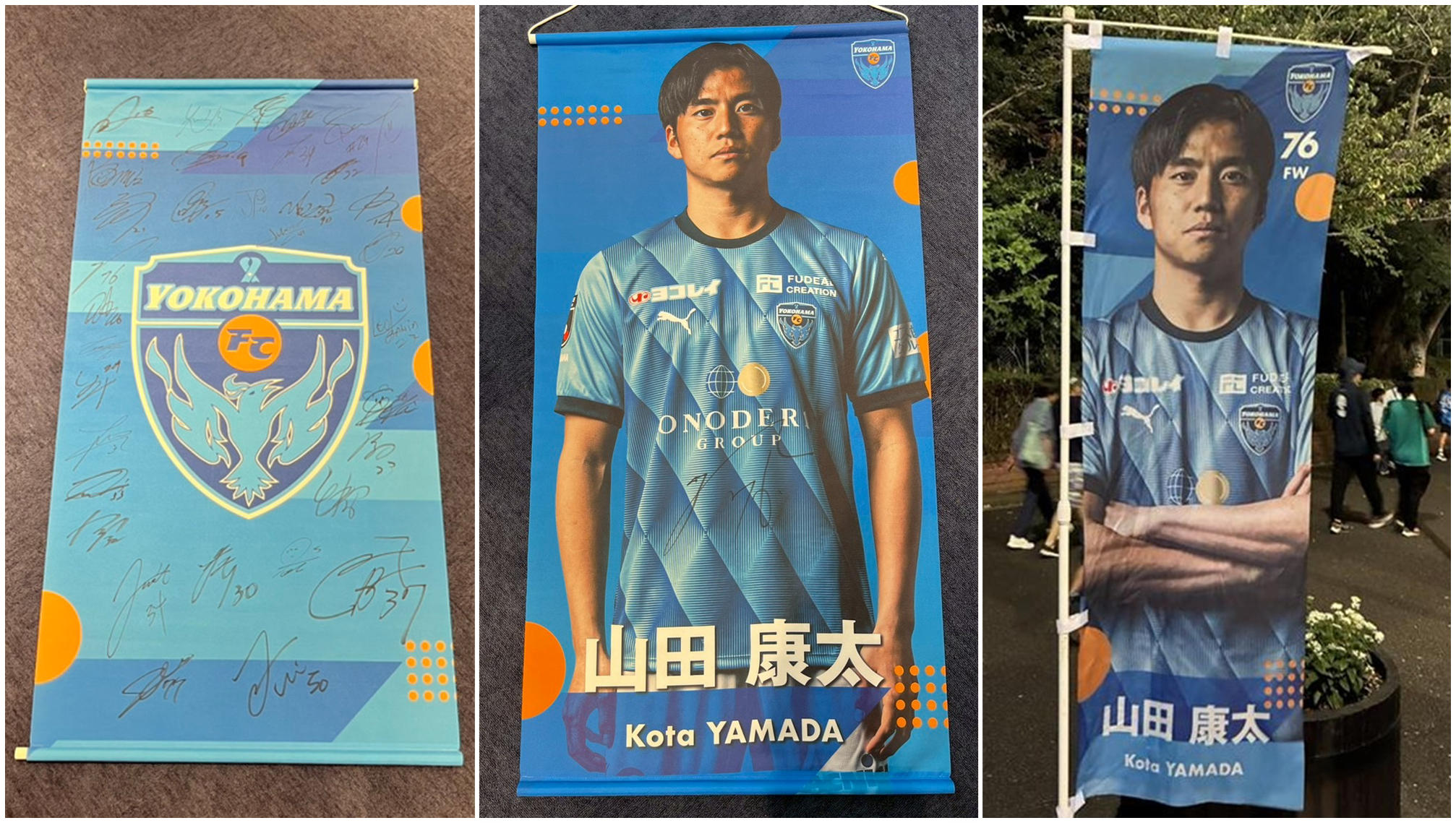 今回お届けするアイテムは、試合時のロッカールームやニッパツ三ツ沢球技場で掲出していた 『ロッカータペストリー/のぼり旗』です!