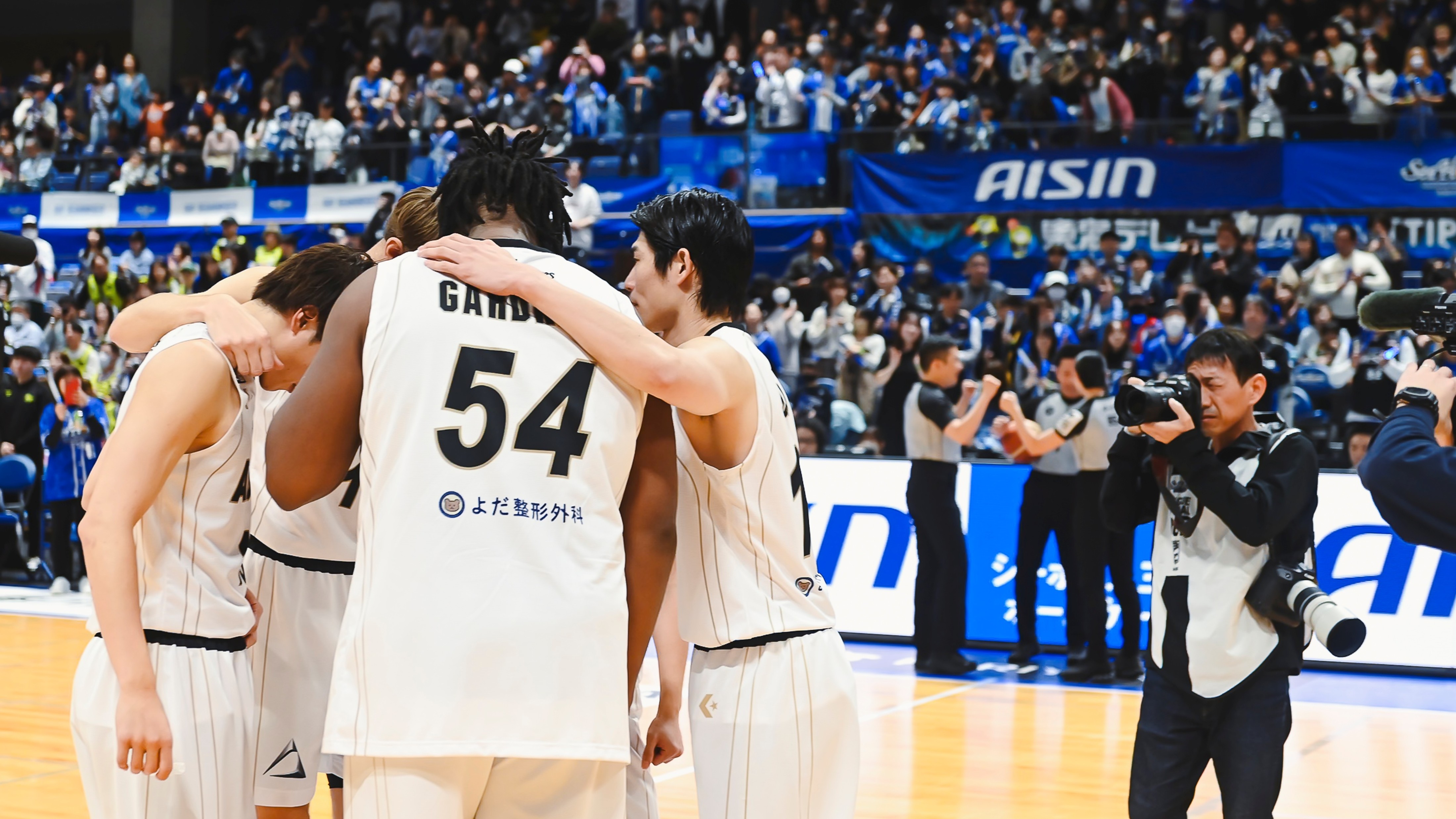 シーホース三河は、2025年11月9日・10日、そして2026年3月28日・29日の4試合において、アイシン創立60周年記念を記念して天皇杯4連覇を達成した2004-2005シーズンのユニフォームをモデルとした「復刻ユニフォーム」を纏い、試合に挑みました。 シーホース三河の歴史がよみがえる特別な一着を着用し、選手たちは着用4試合で全勝という結果を残し、重ねてきた歴史を胸に前へ進む選手たちの姿が現れました。