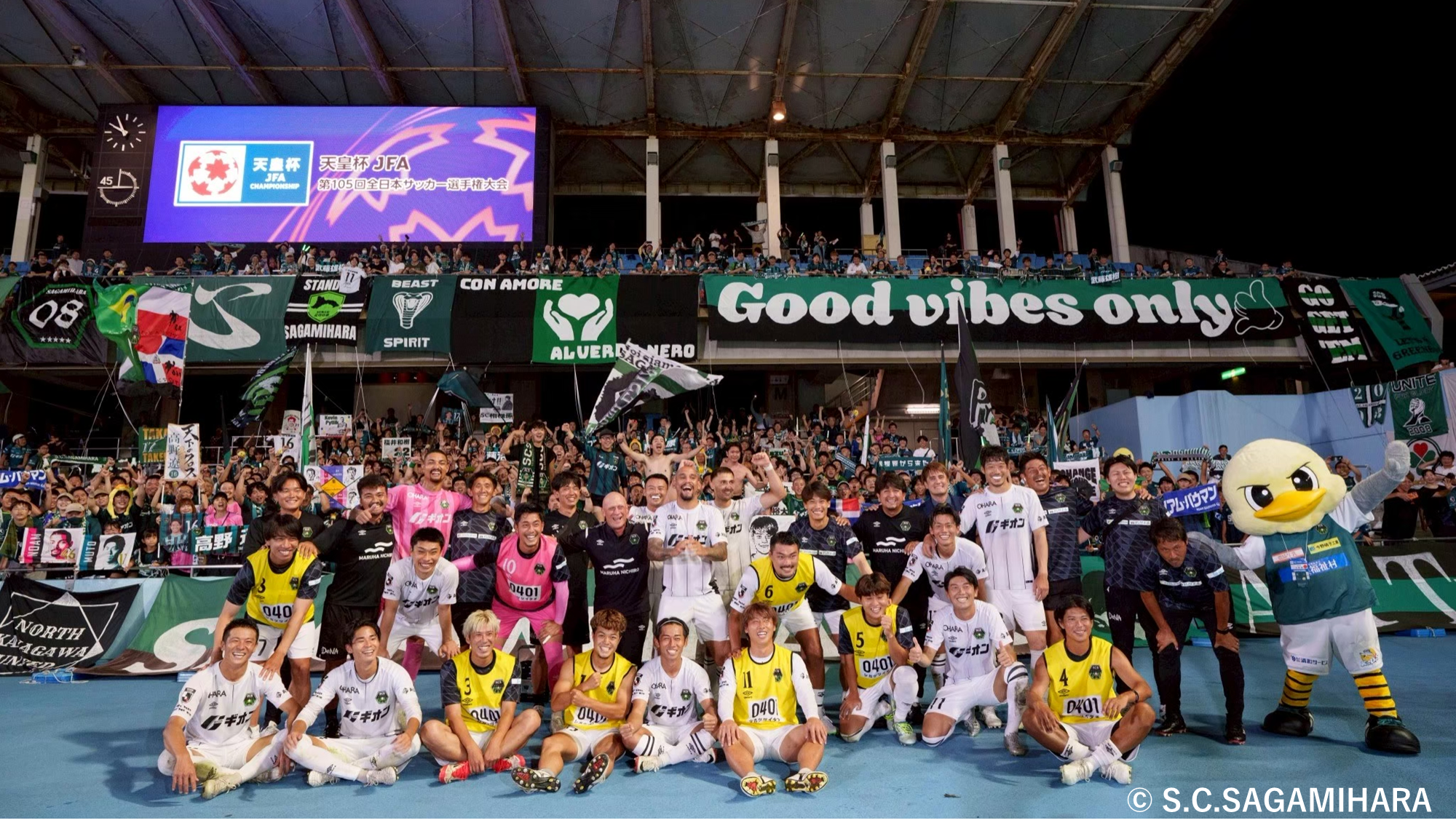 2025シーズン、チームは最後まで一体となって戦い抜き、天皇杯ではJ3クラブ史上初となるベスト8進出を達成することができました。サガミスタの皆さまからの力強いご声援に後押しされ、上位カテゴリのクラブを相手に積み重ねた戦いの一つひとつが、チームにとって大きな経験となりました。
