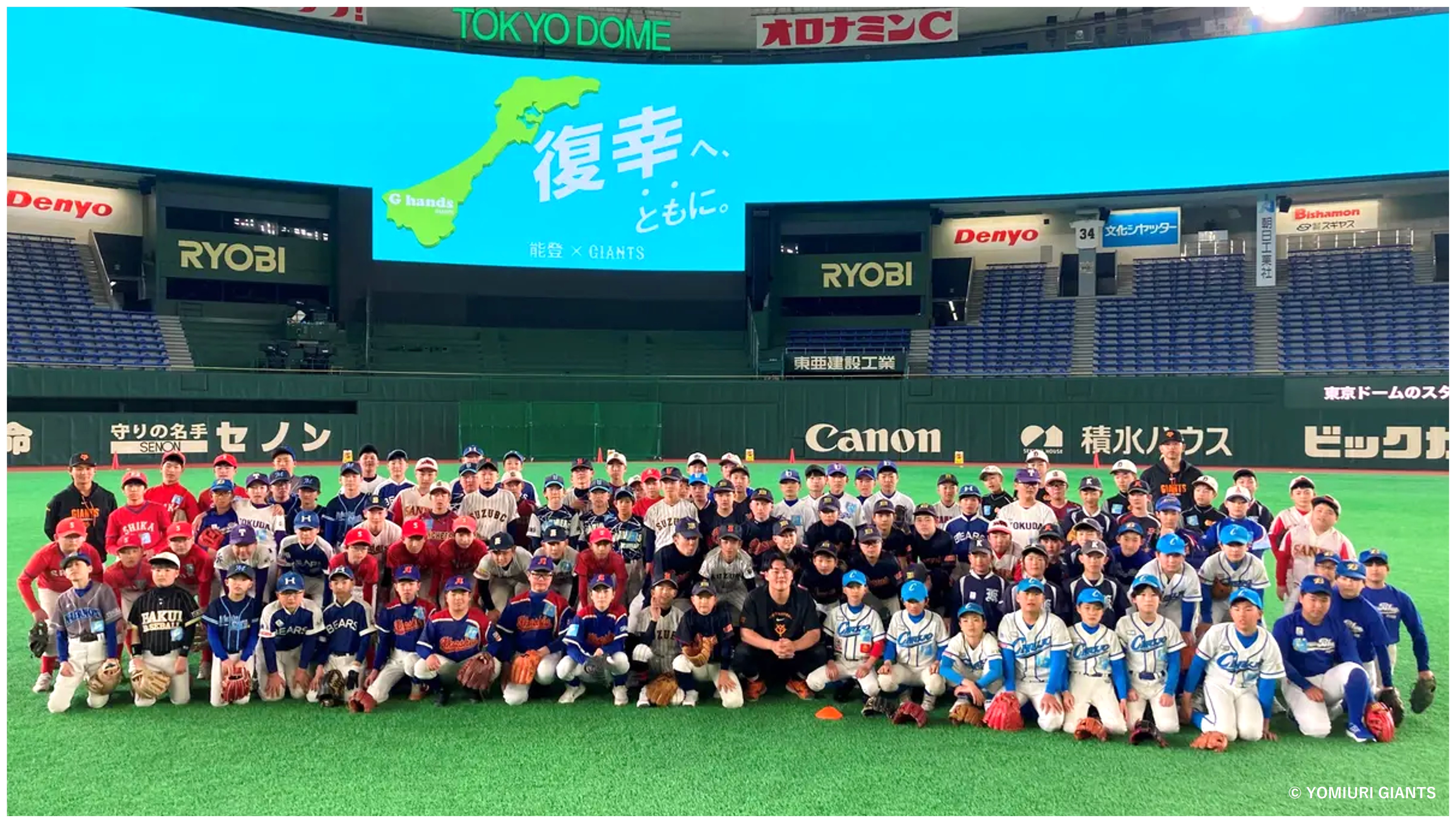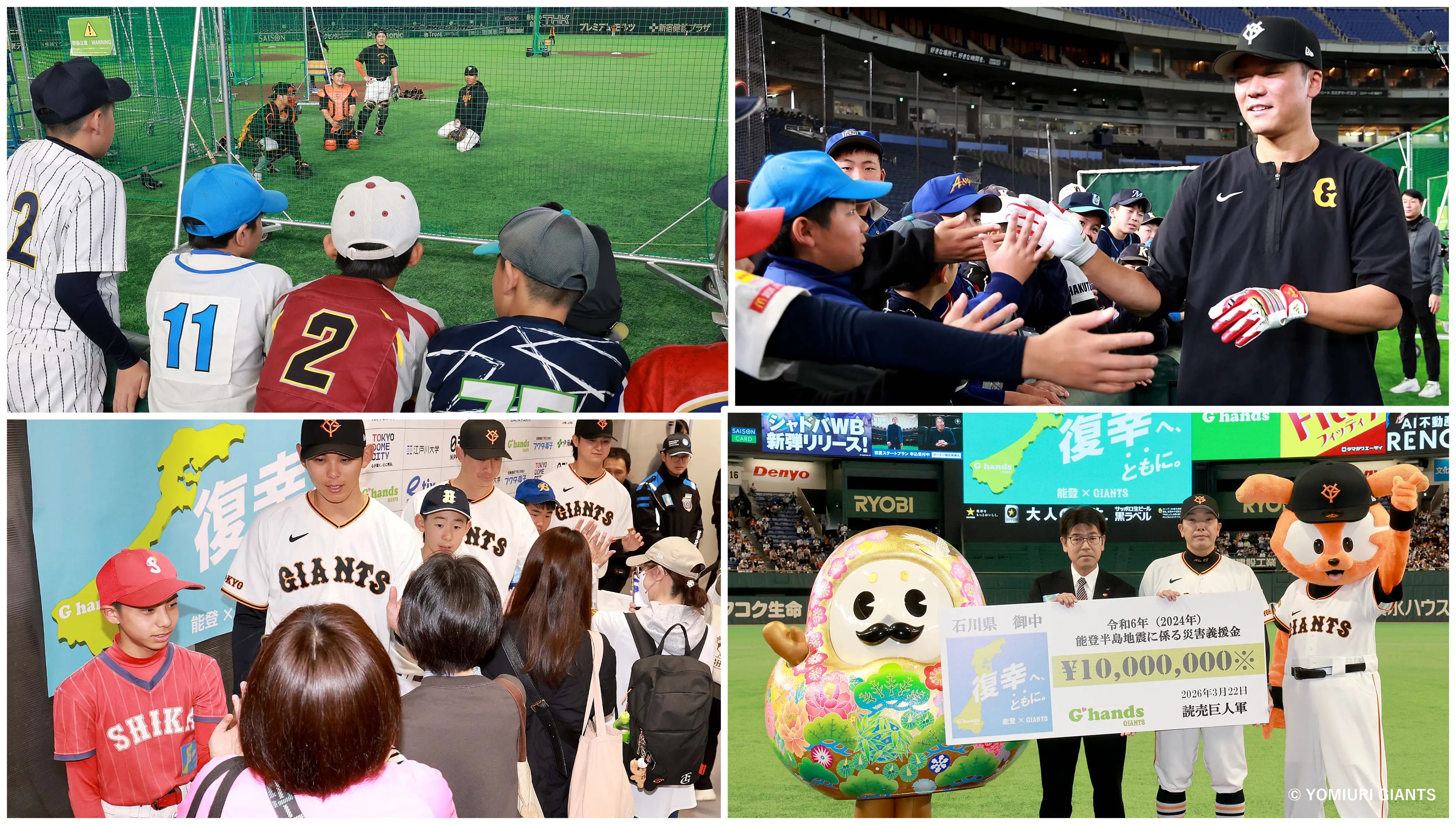 読売巨人軍は、社会貢献活動「G hands」の一環として、能登半島地震・豪雨災害の被災地を支援する復興支援キャンペーン「復幸へ、ともに。」を展開しています。