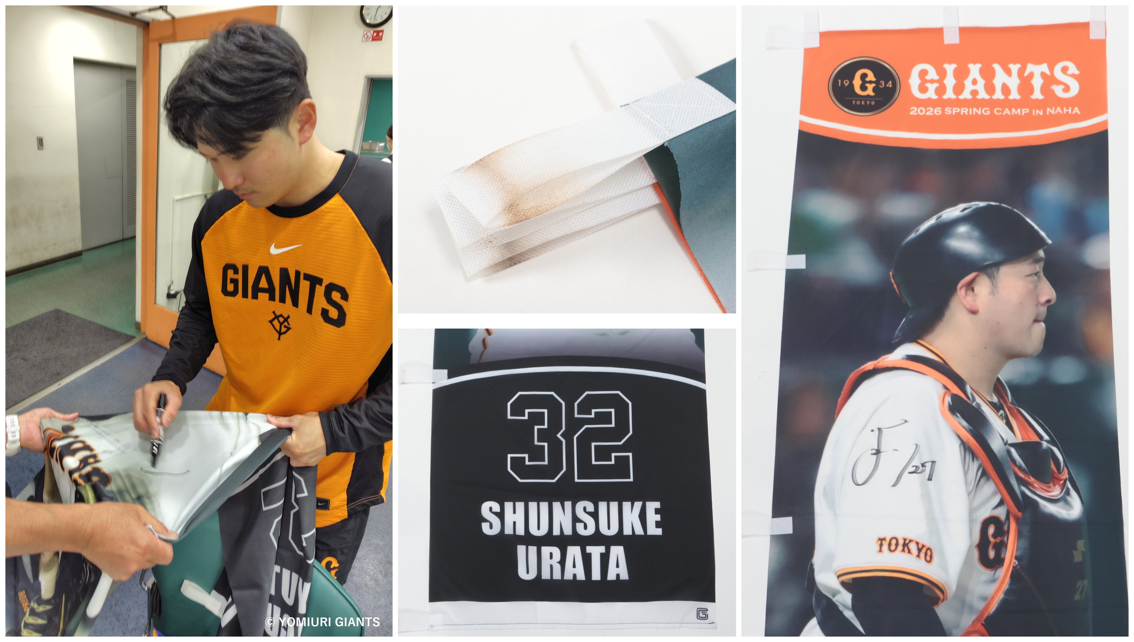 のぼりは、キャンプ地の沖縄セルラースタジアム那覇をジャイアンツ色に染めた、選手の写真・背番号・名前がデザインされたアイテムです。