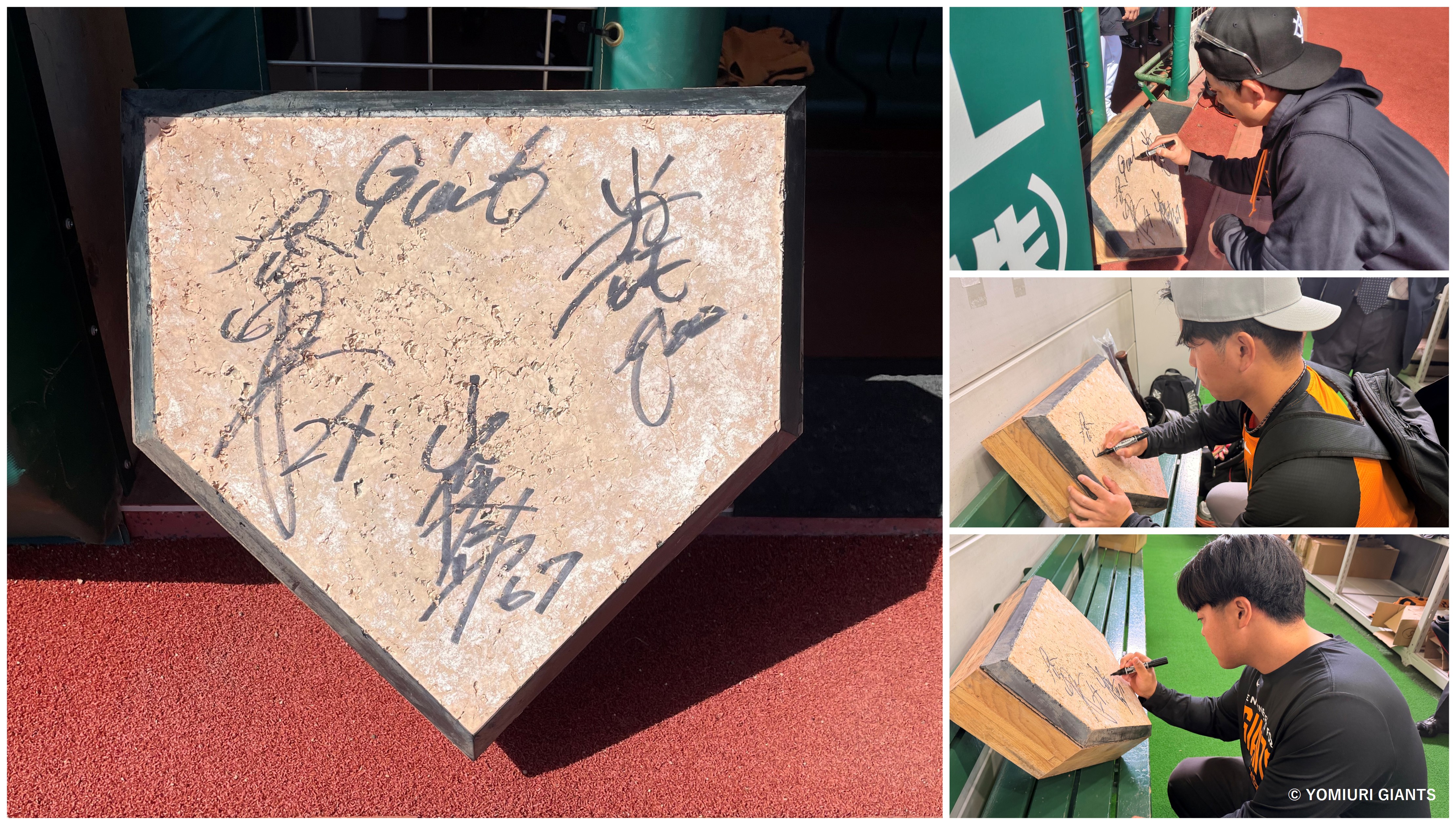 ホームベースは、ジャイアンツタウンスタジアムで実際に使用されたもので、現在のジャイアンツの捕手を代表して、小林誠司選手・大城卓三選手・山瀬慎之助選手の3名の直筆サインが入りました。