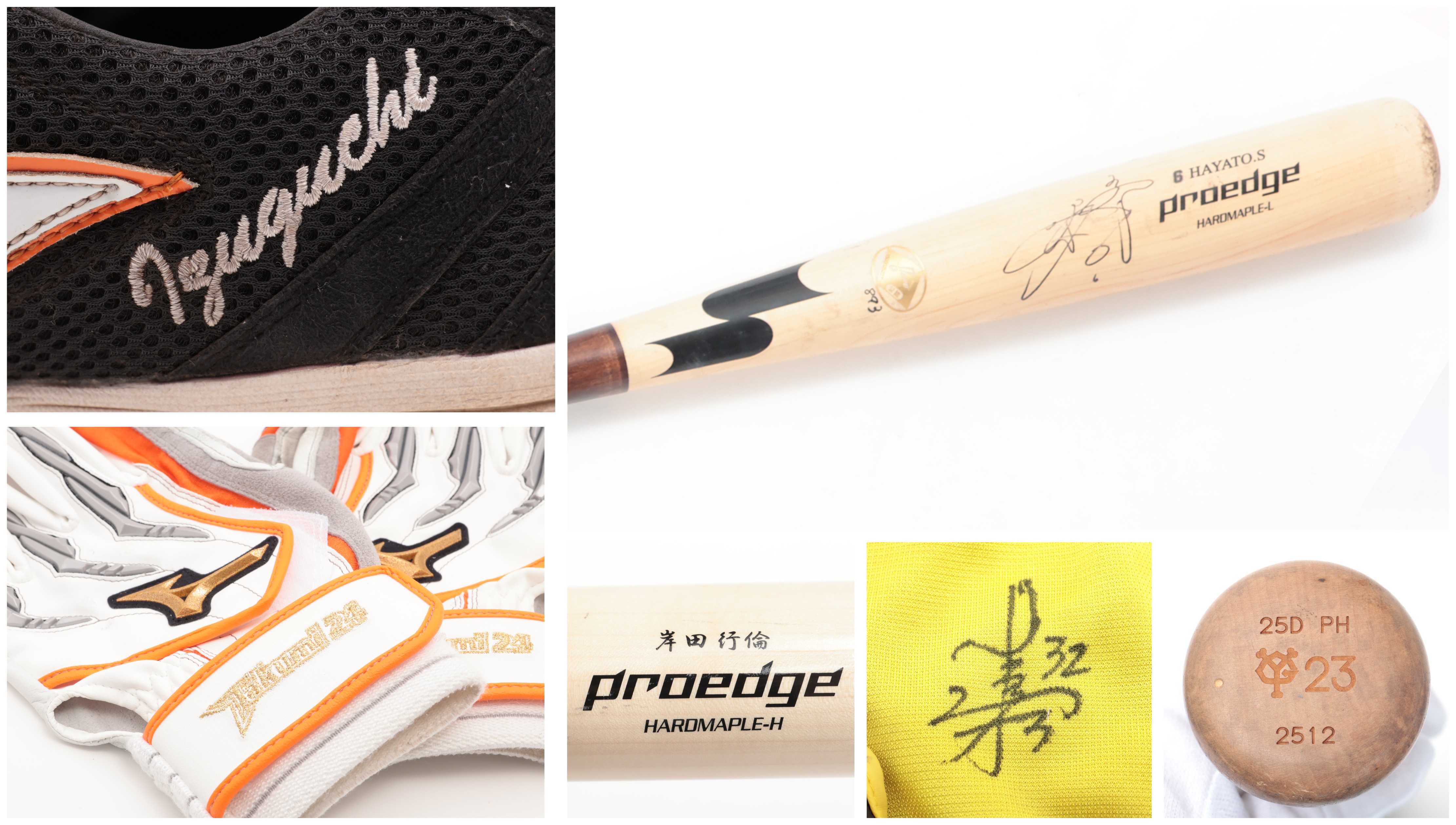 今回は、捕手・内野手が持ち寄ったバットやバッティンググローブに加えて、実使用ホームベース、春季キャンプ実使用のぼり旗を、選手の直筆サイン入りで出品します。
