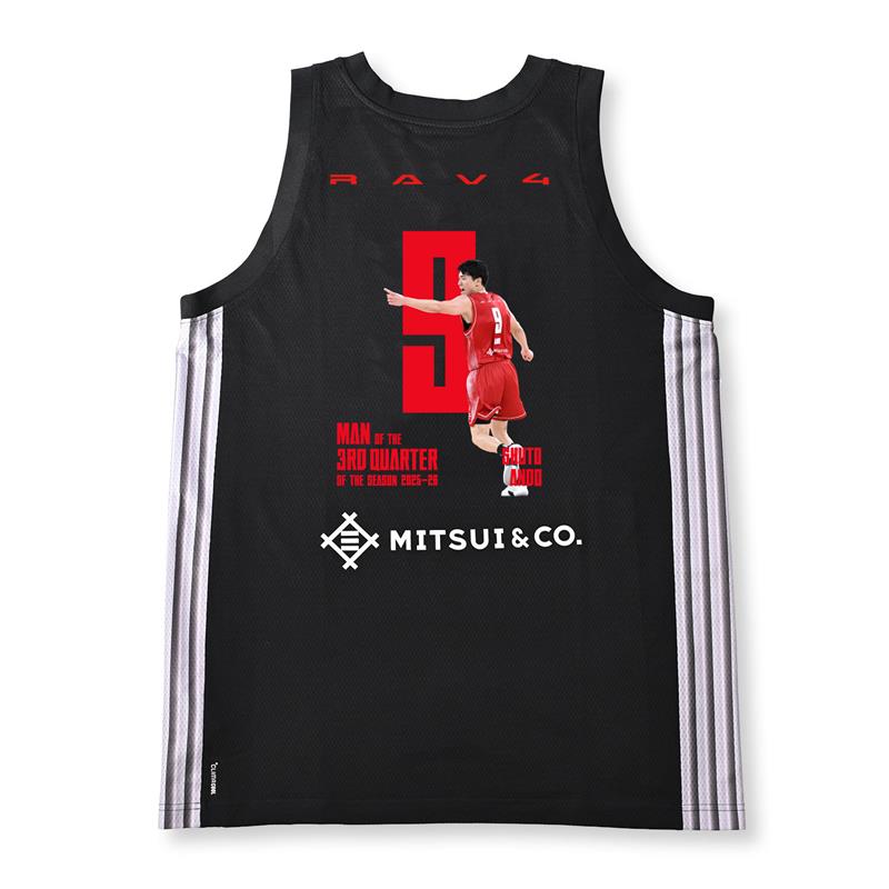 今回お届けするアイテムは、ファンクラブ会員の皆さまの投票によって「Man Of the GAME(MOG)」の最多得票を獲得し、Man of the 3rd Quarter of the Seasonに選出された、#9 安藤 周人選手のプレー写真を使用したMQSオークション限定デザインの記念ユニフォーム並びにMQS選出記念パネル、対象期間の試合での姿を収めたフォトパネルとなっております!